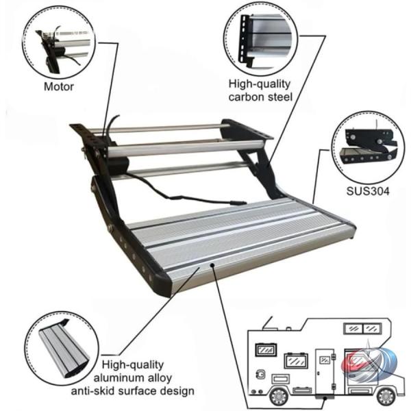 キャンピングカー ステップ 折りたたみ RV電動階段 ゾンチー アルミニウム製 自動ドロップダウンでトラベルトレーラーの乗降を助けやすい