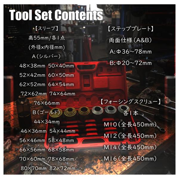 26点セット ジムニー整備等に ブッシュリムーブ&インストールキット ケース付き ブッシュ ベアリング シール 圧入 脱着 特殊工具