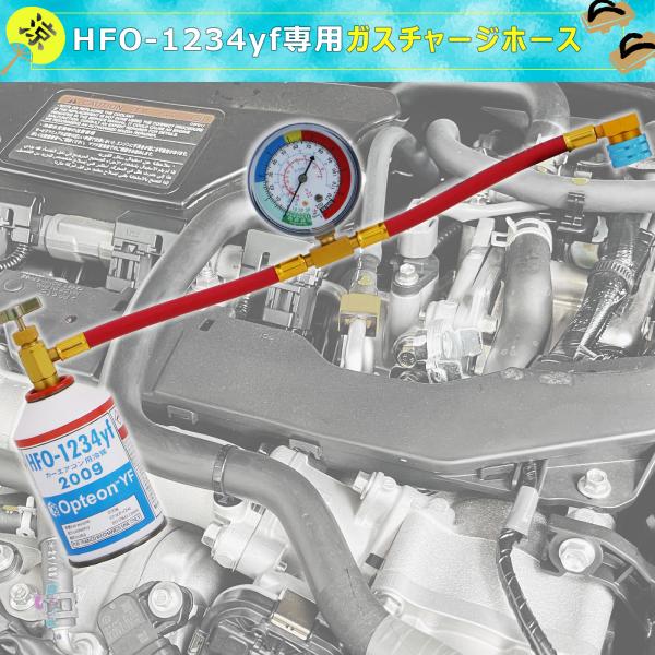 HFO-1234yf用 簡易 ガスチャージホース メーターあり M14 逆ネジ仕様 50510 カーエアコンガスチャージ用 (全長395mm)送料無料 レターパック発送