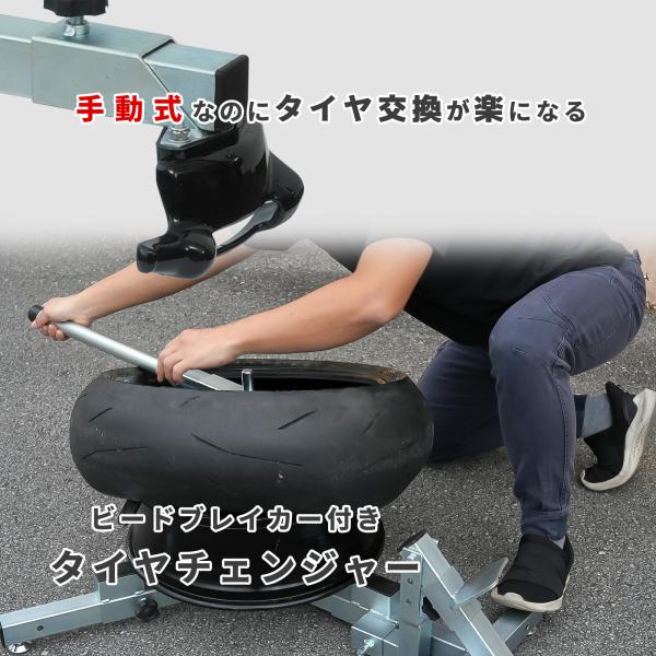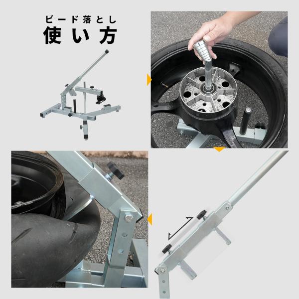 モトトモ バイク用タイヤチェンジャー ビードブレーカー付き ポータブルタイプ 対応幅21cm タイヤ交換 組立式 51509