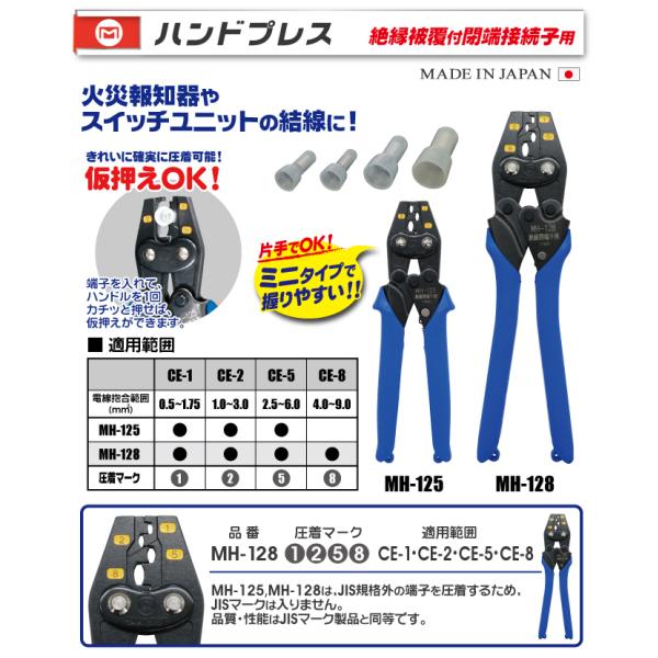 MARVEL マーベル ハンドプレス 絶縁被覆付き 閉端接続子用 MH-125