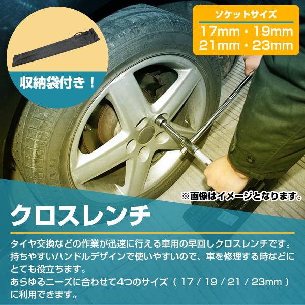 倍力 クロスレンチ タイヤ ホイール 楽ちん 交換 分離型 十字 T字 レンチ 17mm 19mm 21mm 23mm ソケット 収納袋付き 4pc
