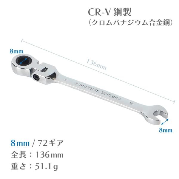 工具 ラチェットコンビネーションレンチ フレックスタイプ 8mm メガネレンチ スパナ ギアレンチ 72ギア