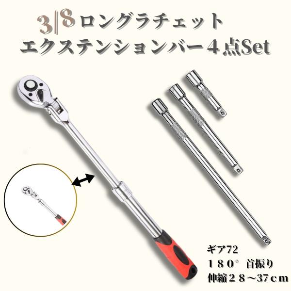 エクステンションバー 首振り伸縮ラチェット エクステンション ジョイント 延長棒 3/8 伸縮式ラチェットハンドル