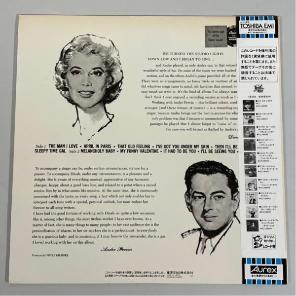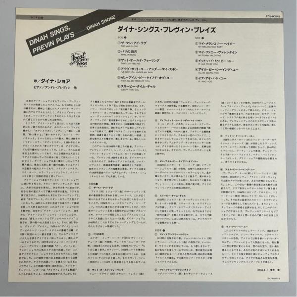 初来日記念盤 帯あり ECJ-60045 ダイナ・ショア ダイナ・シングス・プレヴィン・プレイズ DINAH SINGS PREVIN PLAYS 洗浄済 LP