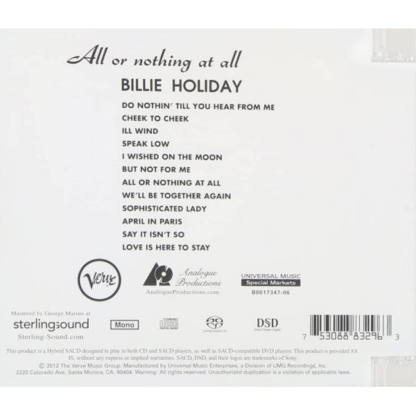 ハイブリッドSACD ビリー・ホリデイ/BILLIE HOLIDAY - ALL OR NOTHING AT ALL Analogue Productions アナログプロダクションズ