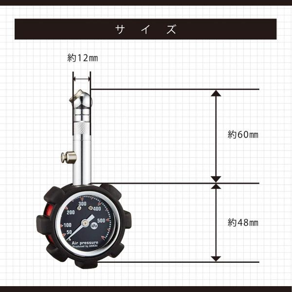 エーモン(amon) エアゲージ(ラバープロテクト付) 最大測定値500kPa ブラック 4978 ラバープロテクト付/ブラック
