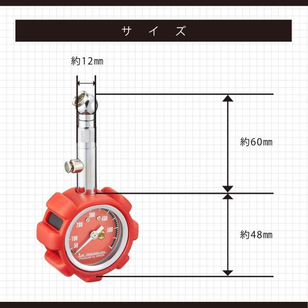 エーモン(amon) エアゲージ(ラバープロテクト付) 最大測定値500kPa レッド 4980 ラバープロテクト付 レッド