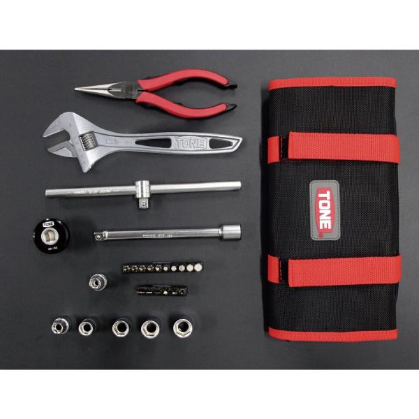 TONE 整備用工具セット ツールバッグセット レッド/ブラック 間口480×奥行265×高さ5mm (TSA3170)(4953488419580) トネ