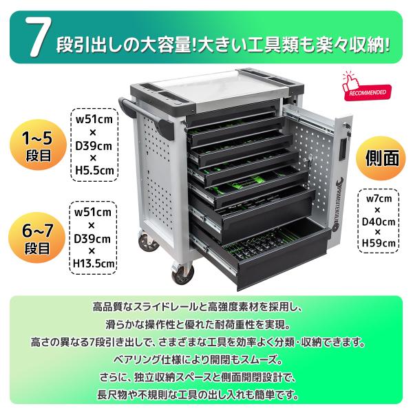 新仕様 工具付き ローラーキャビネット+245点工具セット メンテナンス ツールボックス 工具箱 道具箱 7段 キャビネット ツールワゴン