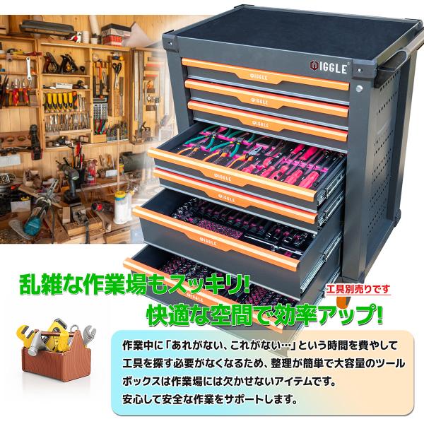 7段 キャビネット ツールボックス 工具箱 工具 ガレージ 深浅型 たっぷり収納 ★ロック鍵付き ストッパーキャスター