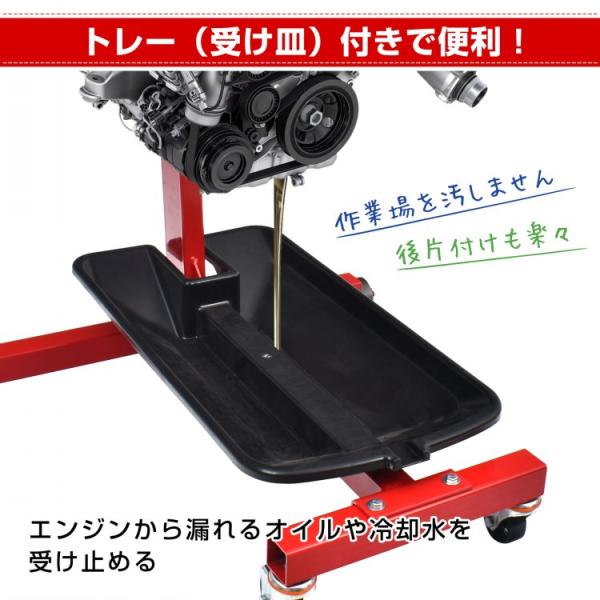 エンジンスタンド エンジン整備スタンド エンジン スタンド 450kg 全周ロック式 トレー付き キャスター付き 幅調整 360度 全周回転 業務用 整備士 レストア 大型