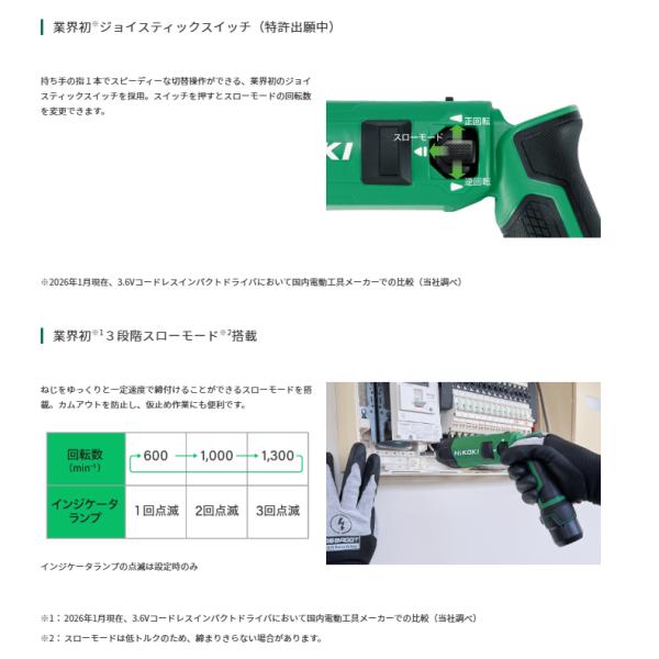 (あすつく 限定特価)HiKOKI (ハイコーキ) 3.6V コードレスインパクトドライバ WH3DA(2JS) 5.0AH セット品 ※バッテリー×2個・充電器付【DIY/電動工具】
