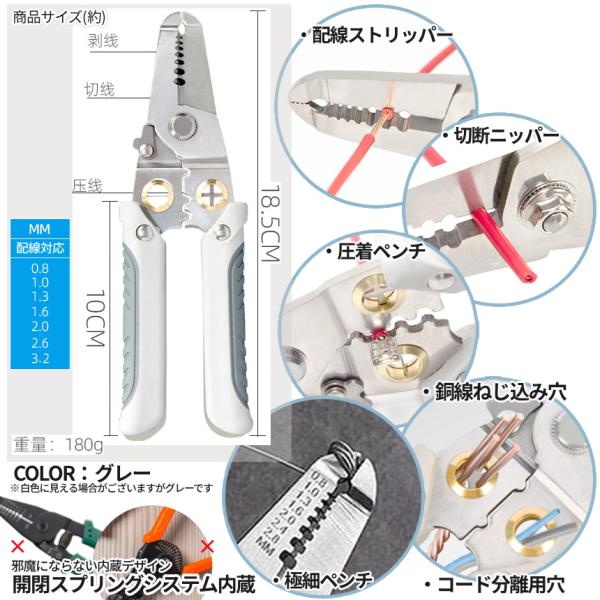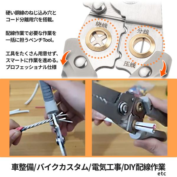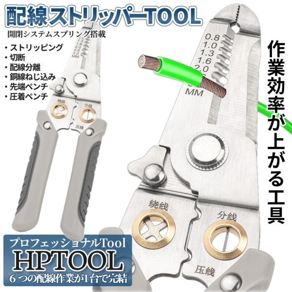 ワイヤーストリッパー 配線 切断 圧着 皮むき 被覆剥き ねじる ツイスト 分線 ペンチ ツール ストリッパー ワイヤー ケーブル コード 整備 電気 DIY 工具 HPTOOL