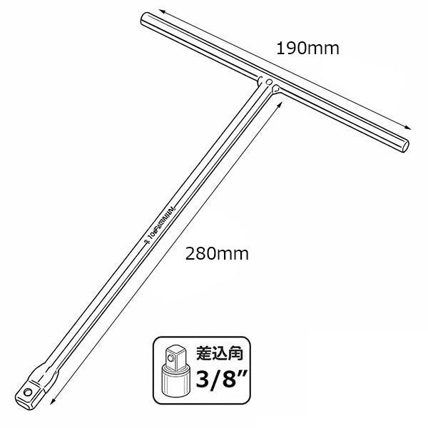 3/8" T型ハンドル&変換アダプター2pcセット T型レンチ Tレンチ T264