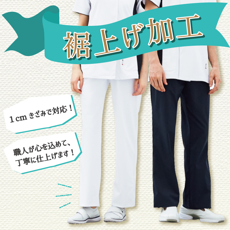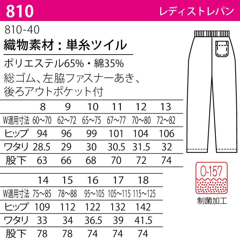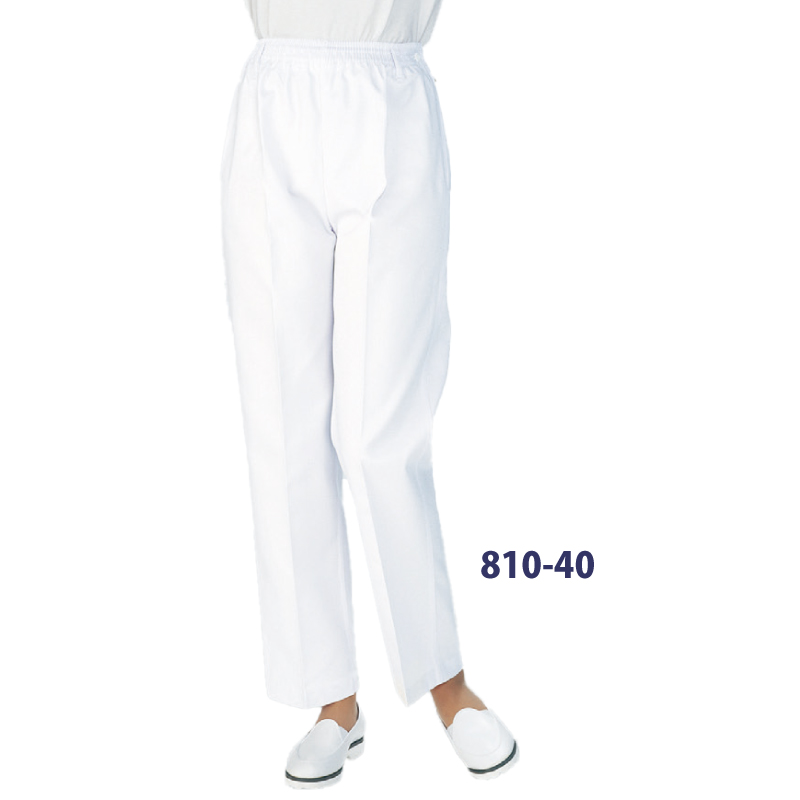 トレパン パンツ レディース コック シェフ フード レストラン 飲食店 和食 洋食 厨房 調理師 ユニフォーム 白 O-157 制菌 総ゴム 快適 ラク KAZEN 810 裾上げ