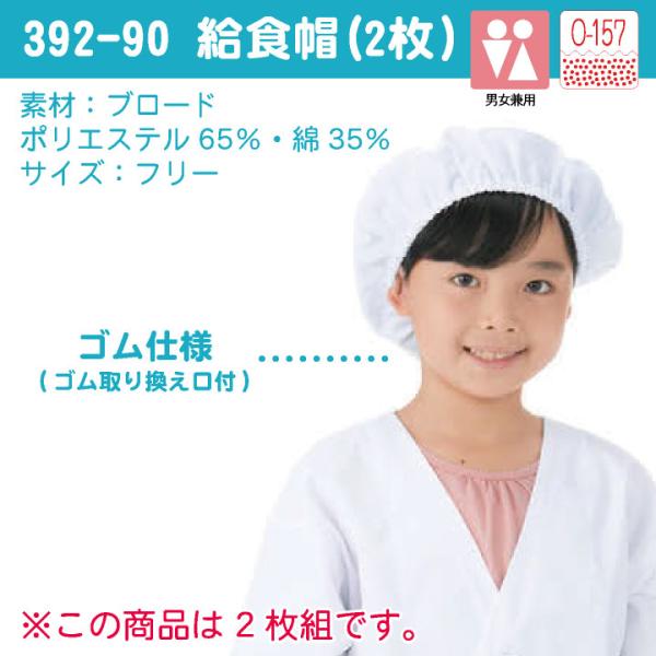 カゼン 給食帽(2枚入り) O-157対応 制菌 小学校 保育園 子供用 入学準備 給食白衣 学校給食 給食衣 衛生着 衛生白衣 KAZEN ネコポス kz-392-90