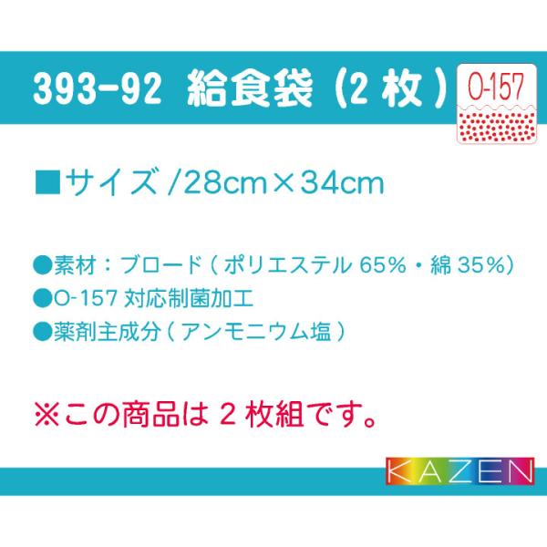 カゼン 給食袋 (2枚セット) O-157対応 制菌 小学校 保育園 子供用 入学準備 給食白衣 学校給食 給食衣 衛生着 衛生白衣 KAZEN ネコポス kz-393-92