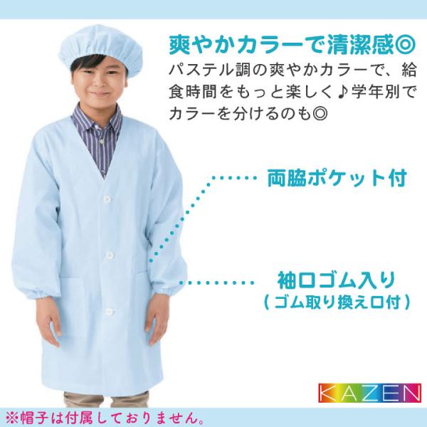 KAZEN カゼン 給食着 給食エプロン O-157対応 制菌 小学校 保育園 子供用 入学準備 給食衣 衛生着 (ネコポス) (即日出荷) kz-397-90-b