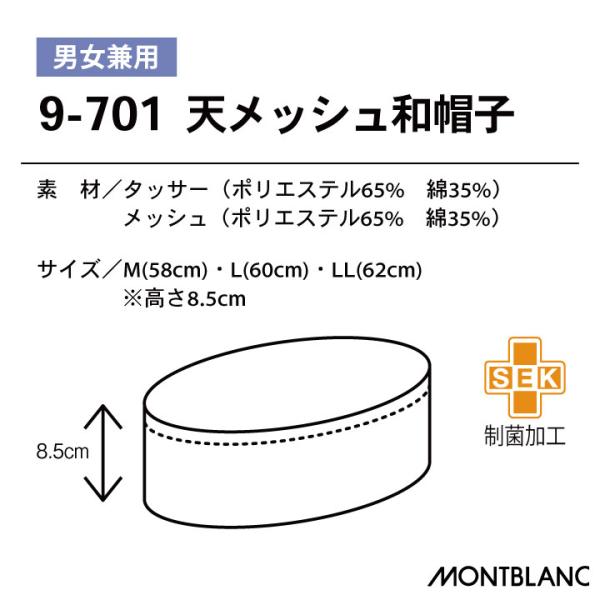 和帽子 天メッシュ 調理帽 厨房 白衣 制菌加工 和食 板前 寿司屋 日本料理 割烹 料亭 飲食店 ユニフォーム 制服 住商モンブラン ネコポス sm-9-701