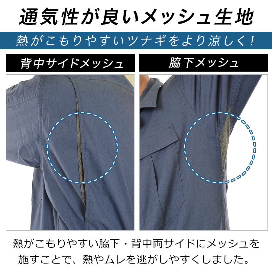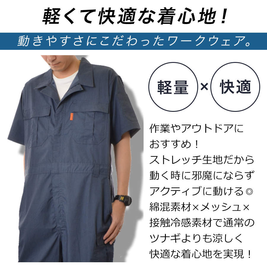 プロノ クールストレッチ半袖カーゴツナギ PR-2507 接触冷感 通気 メッシュ 夏用 薄生地 オーバーオール メンズ つなぎ おしゃれ 作業服
