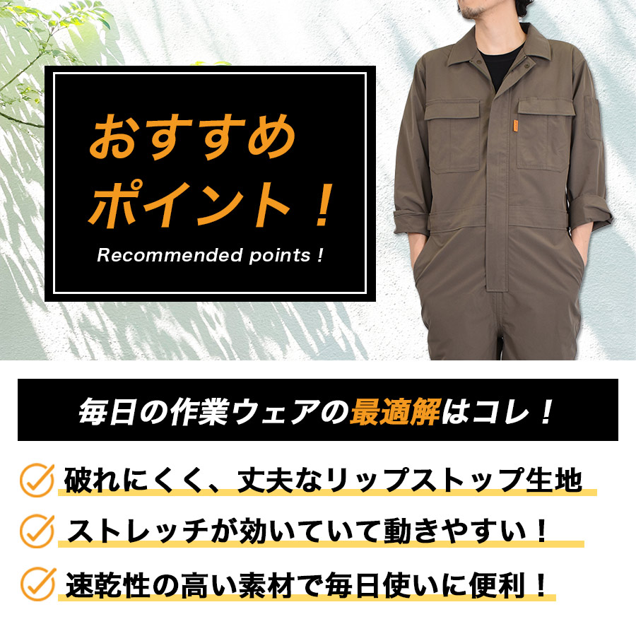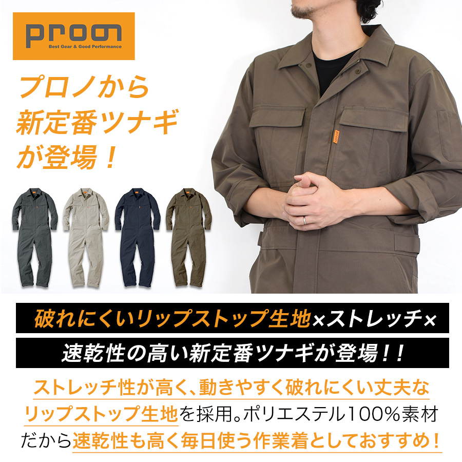 プロノ リップストップストレッチツナギ PR-2602 年間 つなぎ オーバーオール メンズ 作業服 作業着 メカニック 整備 車 バイク 農業 畑 DIY