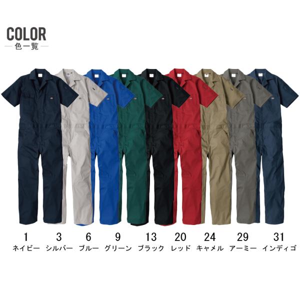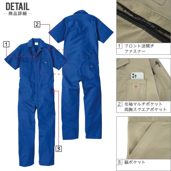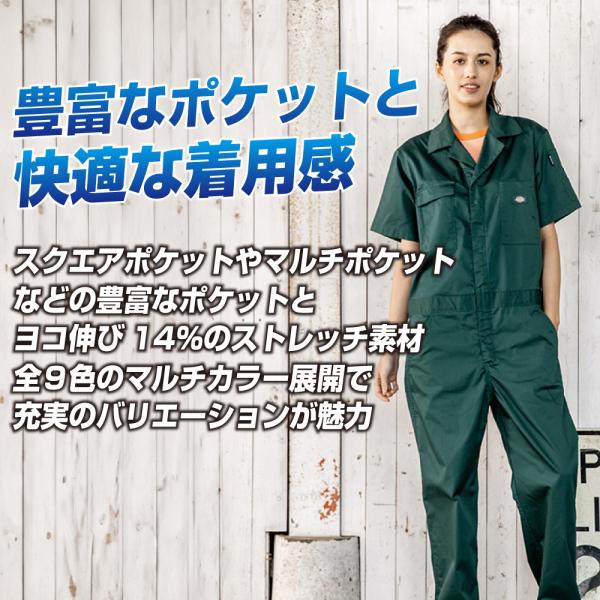 つなぎ 半袖 メンズ 作業服 Dickies ディッキーズ D-6702 春夏 ストレッチ 吸汗速乾 軽量