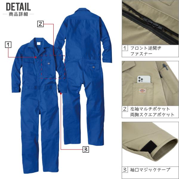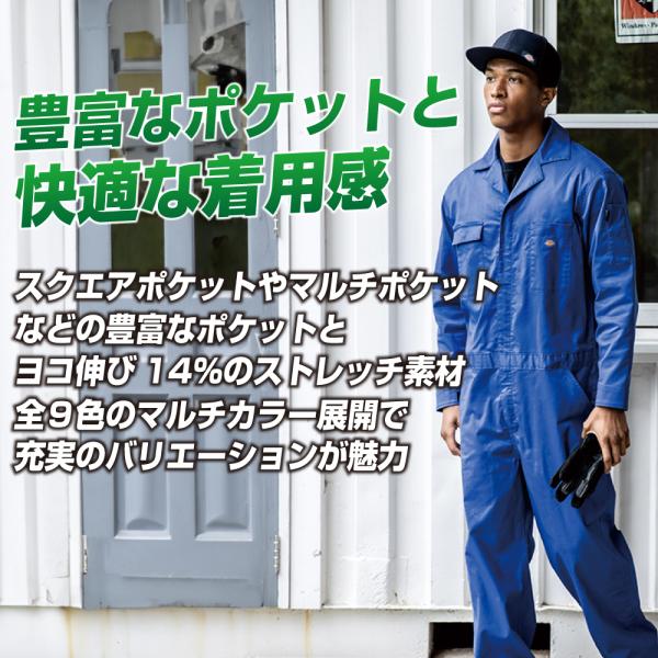 つなぎ 長袖 Dickies ディッキーズ D-676 春夏 ストレッチ 吸汗速乾 UVカット メンズ 作業服