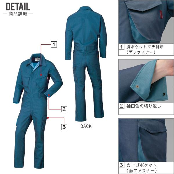 AUTO-BI 山田辰 2 通年 ストレッチ 帯電防止 長袖つなぎ メンズ 作業服 多ポケット デニム 綿素材