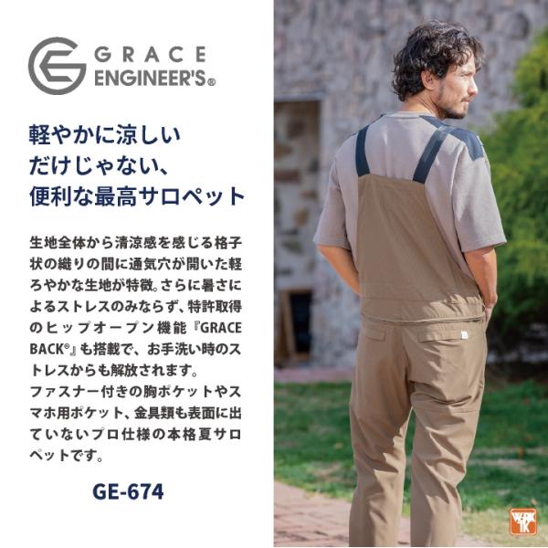 グレースエンジニア サロペット 涼しい 軽い 春夏 薄手 つなぎ オーバーオール 作業着 作業服 酪農 農業 整備士 メンズ レディース 大きいサイズ sk-ge674-b