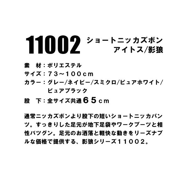 影狼 ショート ニッカズボン 鳶 ニッカポッカ 11002 作業服 作業着 アイトス