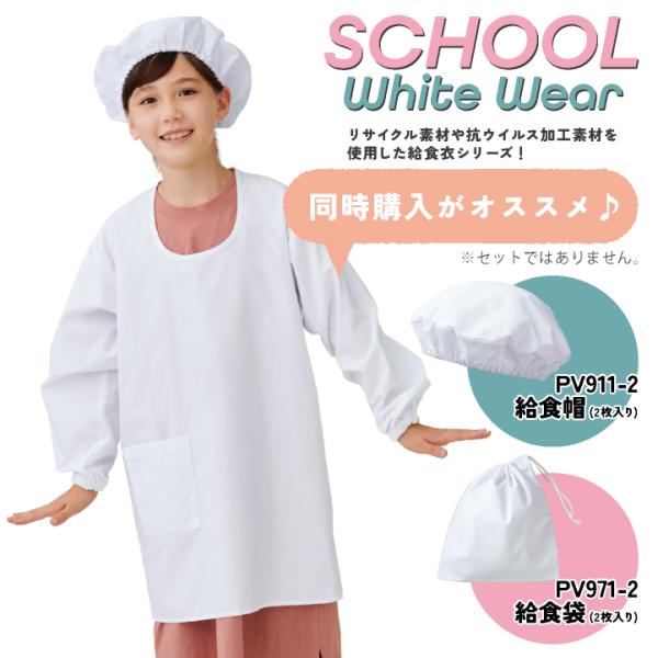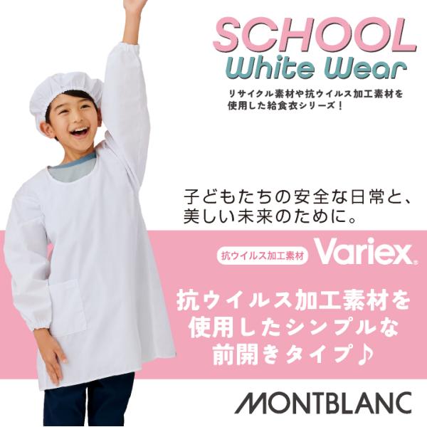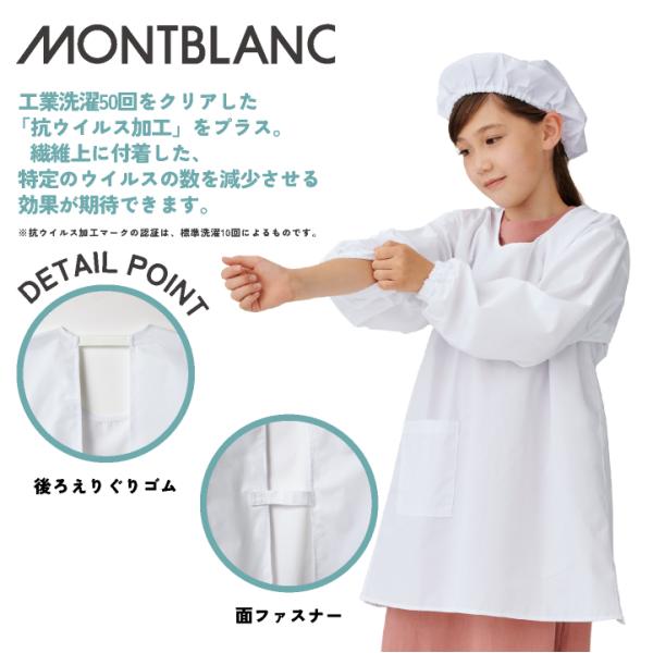 住商モンブラン 割烹着 カッポウ型給食衣 児童用長袖 給食エプロン 小学生 中学生 春夏 秋冬 白衣 メンズ レディース 抗ウイルス 学校給食 おしゃれ sm-pv401-2
