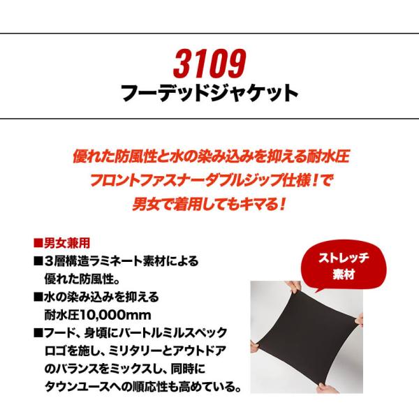 作業着 マウンテンパーカー バートル 3190 防風パーカー フーテッドジャケット 秋冬 男女兼用