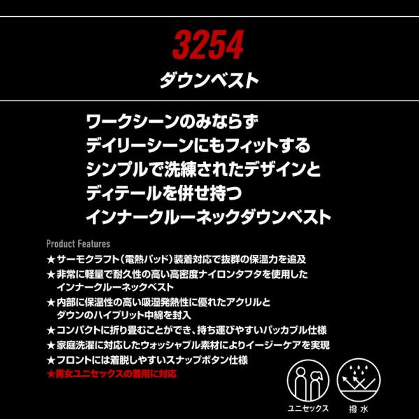 バートル 3254 ダウンベスト 単品 アウター ベスト 防寒着 アウトドア 作業着 バートル 2023秋冬新作 サーモクラフト 電熱パッド 装着対応 撥水 ユニセックス