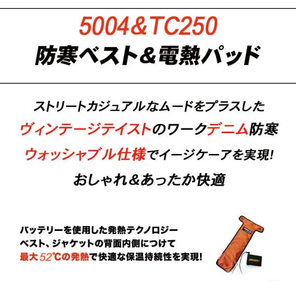 5004防寒ベスト&TC250サーモクラフトセット バートル デニム防寒ベスト 電熱パット対応 防寒着 作業着