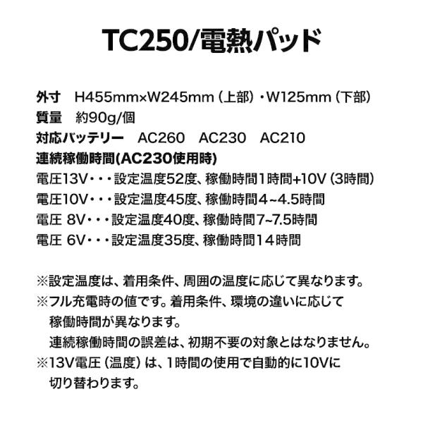 バートルサーモクラフト 電熱パッド オレンジ TC250 BURTLE 秋冬 電熱ベスト