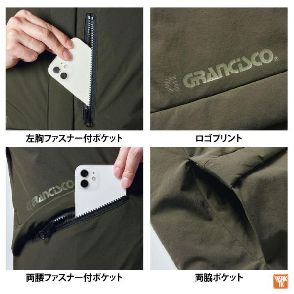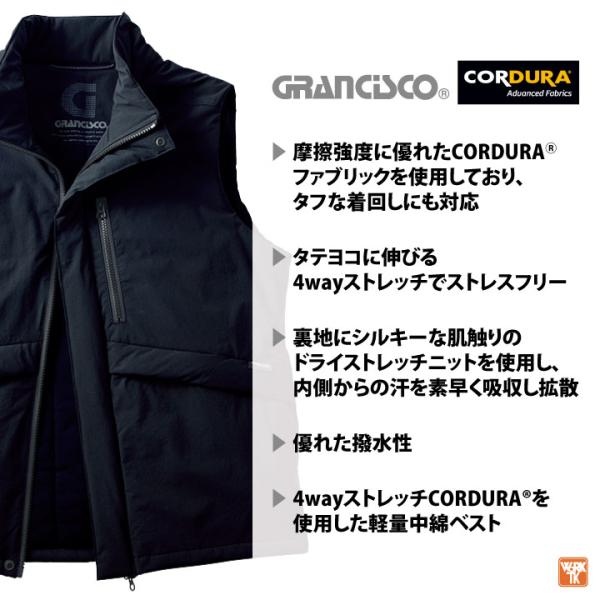 コーデュラ ナイロン 防寒 ベスト ストレッチ 秋冬 中綿 メンズ レディース 作業着 作業服 おしゃれ かっこいい 大きいサイズ グランシスコ ty-gcw587