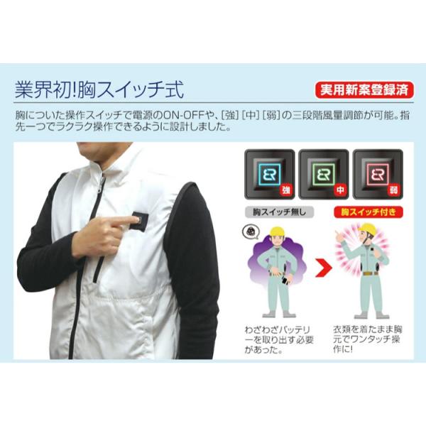 空調エアコン服 ベスト フルセット 胸スイッチ付 MESH-BN-003 フルハーネス対応 バッテリー付 空調ベスト 熱中症対策に