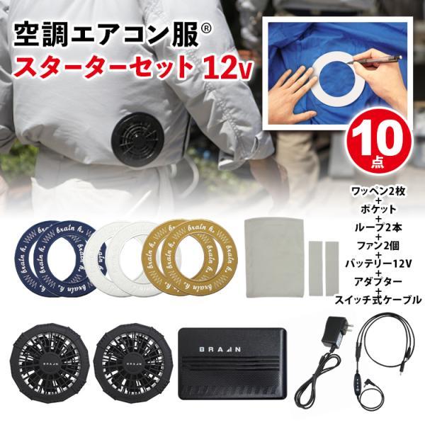 空調エアコン服R スターターセット 12V仕様 10点 ワッペン2枚 ポケット ループ2本 ファン2個 バッテリー 充電器 スイッチ式ケーブル