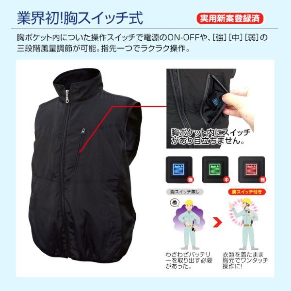 空調ベスト フルセット MESH-KB-111 胸スイッチ式 ウェア+ファンユニット 熱中対策 現場 ファンベスト