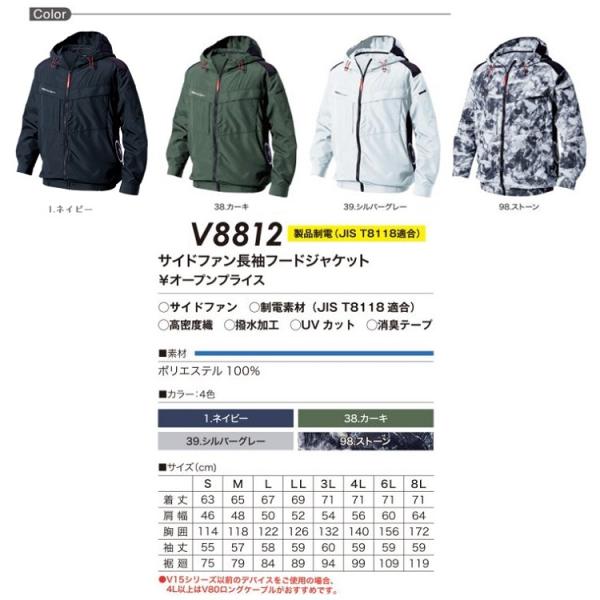 熱中症対策 HOOH 鳳皇 快適ウェア V8812 サイドファン 長袖 フード ジャケット フルハーネス対応 電動ファン付きウエア 空調ウェア