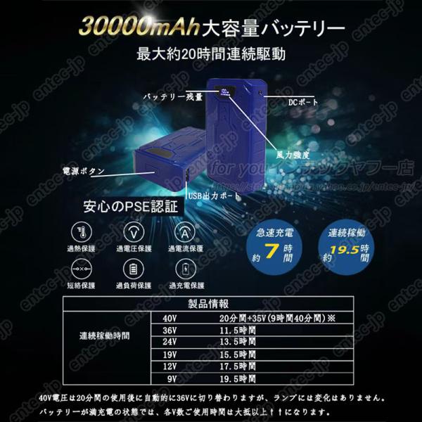 即納 空調ウェア2025 空調作業服用 ファンバッテリーセット 40V バッテリー ファン 5枚羽強力 6段階調節可能 熱中症対策 セット 空調ウェア対応 30,000mAh大容量
