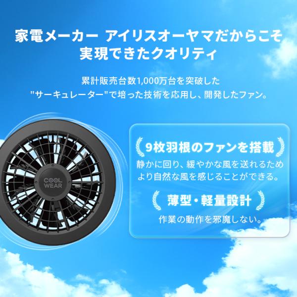 クールウェア 空調ウェア バッテリー 長袖 ファン付 夏 涼しい アウトドア レジャー 屋外 作業服 作業着 フルセット アイリスオーヤマ CFNS *