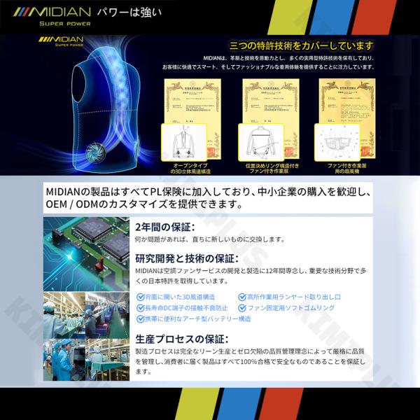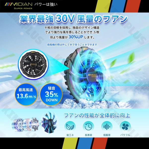 MIDIAN 空調作業服 ファン 20000mAhバッテリー セット 30V出力 熱中症対策 半袖 ブルゾン 綿 新型空調作業着 屋外作業 日本語説明書付き