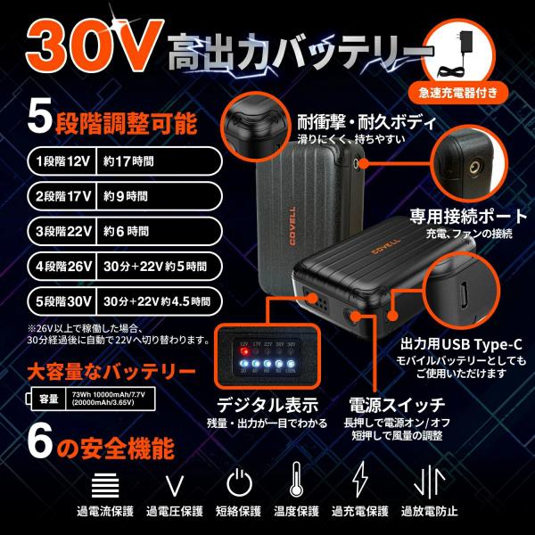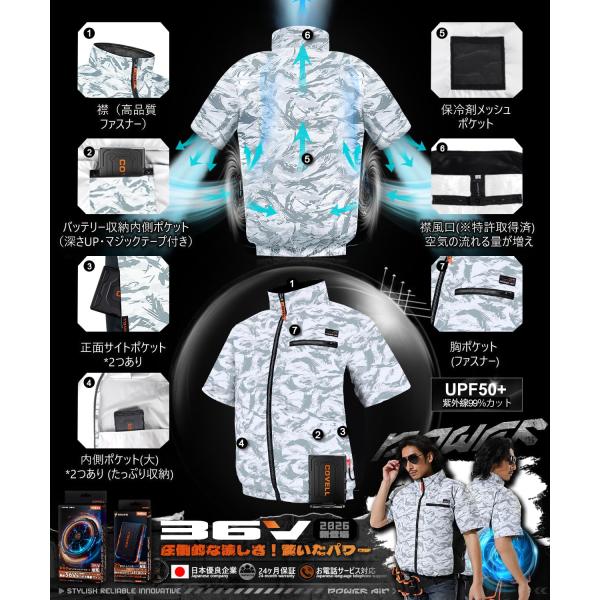 空調冷風服 2026年新商品 空調作業服 36V超高出力 12V〜36Vまで調整可能 UPF50+ 最大約30時稼働 通気 速乾 S〜7L 晴空 調 服色 プレゼント COVELL 【DXP002】