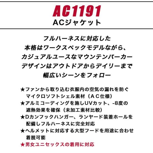 バートル AC1191 エアークラフトフーディジャケット 単品 ファン付作業服 フルハーネス対応 UVカット 遮熱 バートル 2023春夏新ファン付作業着 EFウェア