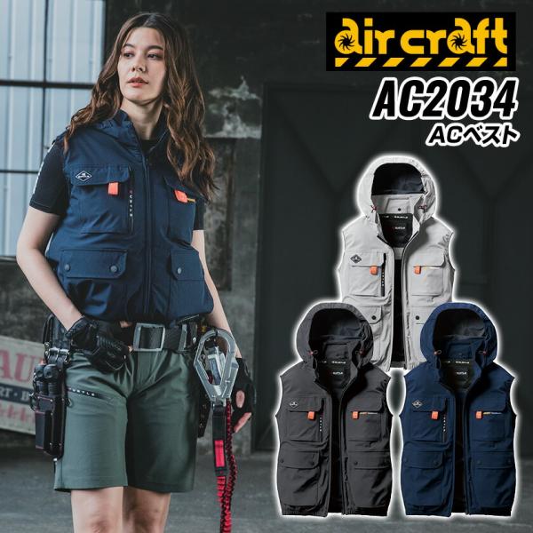 バートル AC2034ベスト 単品 アウター ストレッチ アウトドア 作業着 BURTLE 男女兼用 熱中症対策 バートル2025春夏新作 エアークラフト