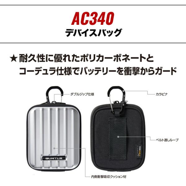 バートル デバイスバック AC340 耐久 衝撃 バッテリーケース ガード ケース 衝撃吸収 ダブルジップ カラビナ ユニセックス 男女兼用 バートル2022 春夏