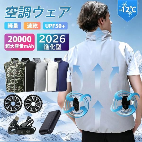 正規品 空調作業服 ファン付き 半袖 男女兼用 扇風機 大風量 20000mAh UVカット 通気性 3段階強風 UPF50+ 空調ベスト 冷却服 空調ウェア エアコン服 ワークマン