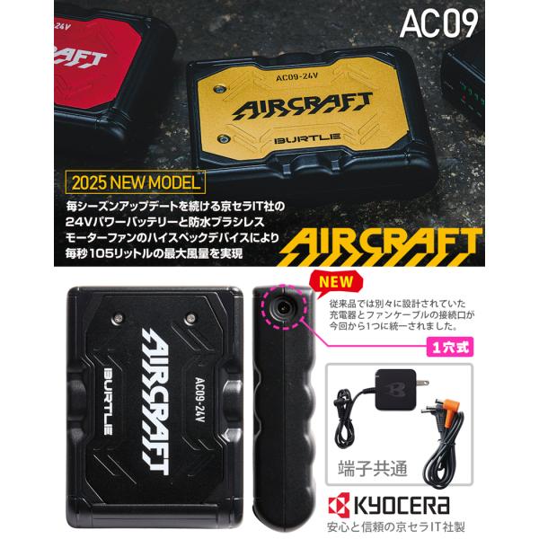 \P10倍/ バートル AC09 リチウムイオンバッテリー 2025年 24V BURTLE 【AIR CRAFT】 バッテリーセット エアークラフト 2025年版 24ボルト 在庫有り